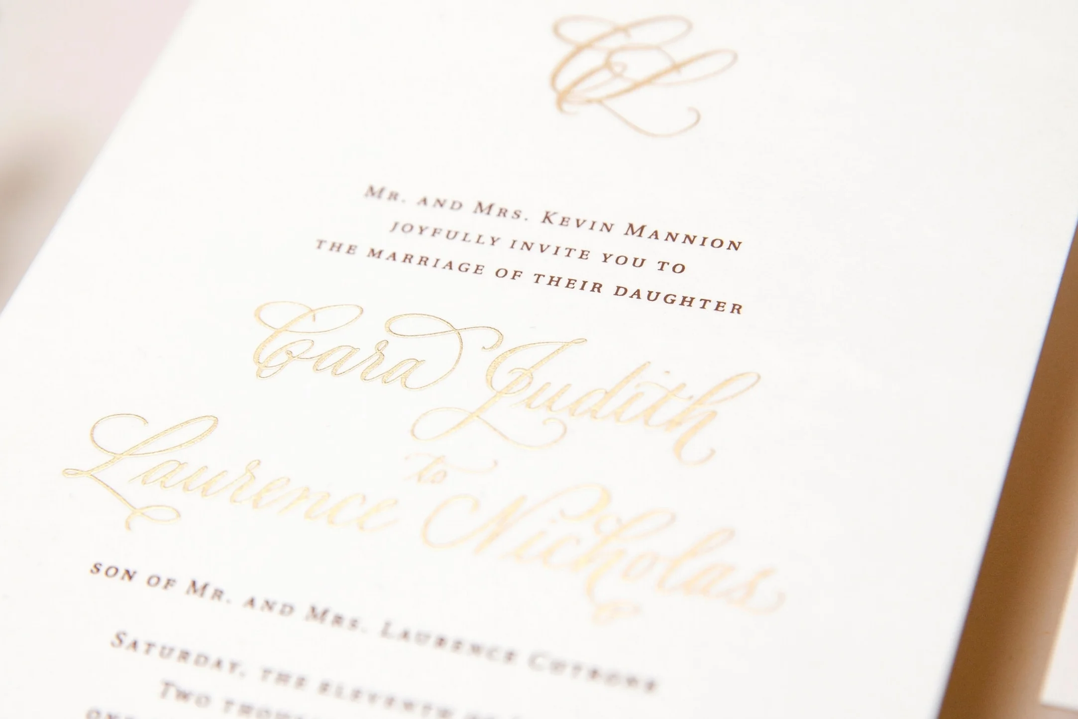 The finest of all print methods, genuine engraving is the only fine print method where a luxuriously raised textured is achieved. Engraving is available in any color, however, most couples fall in love with the the shimmering metallic hues used to create silver and gold. Engraving can be done on any paper surface, light or dark, and may be carefully paired with letterpress printing.